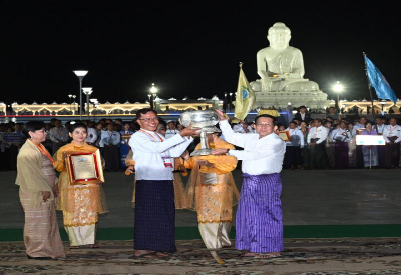 ​​​​​​​The award ceremony for the 2025 Tazaungdine lighting festival, the hot-air balloon launch competition, and the Matho robe-weaving competition was held yesterday evening at the fountain square in the Maravijaya Buddha Garden in Dekkhinathiri Township, Nay Pyi Taw Union Territory. The ceremony was attended by Acting President of the Republic of the Union of Myanmar and State Security and Peace Commission Chairman Senior General Min Aung Hlaing.