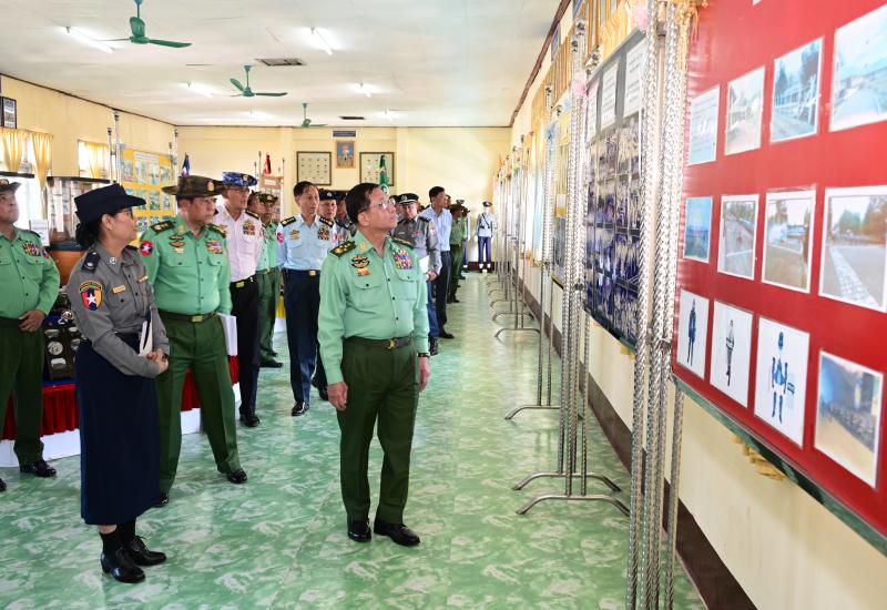 Acting President of the Republic of the Union of Myanmar and State Security and Peace Commission Chairman Senior General Min Aung Hlaing, accompanied by Commission Secretary and Joint Executive Chief General Ye Win Oo and the Mandalay Region Chief Minister, inspected the Civil Service Academy (Upper Myanmar), the Police Officer Training Depot (Zeebingyi) and the Central Firefighting Training School (PyinOoLwin) in Zeebingyi of PyinOoLwin Township in Mandalay Region yesterday morning.