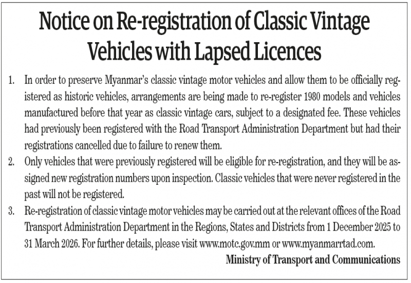 Notice on Re-registration of Classic Vintage Vehicles with Lapsed Licences