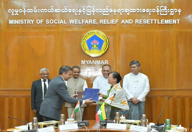 The signing ceremony for the Memorandum of Understanding (MoU) regarding the “Construction of a Preschool in Lewe Township, Nay Pyi Taw” was held at 6 pm yesterday in the meeting hall of the Ministry of Social Welfare, Relief and Resettlement.