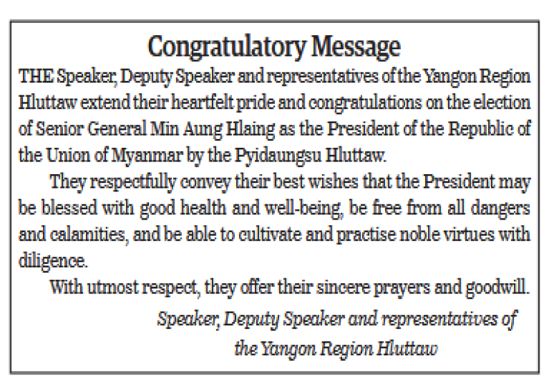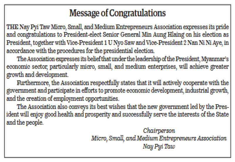 VARIOUS organizations, associations and committees have issued statements expressing their pride and offering congratulations on the election of Senior General Min Aung Hlaing as President.