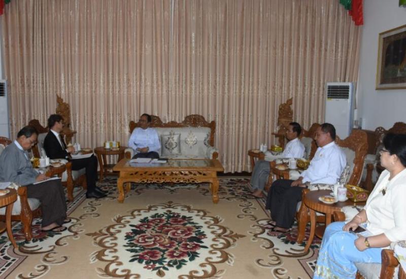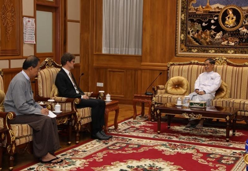 U Ko Ko Hlaing, Union Minister for the Ministry 2 of the President’s Office, received Mr Arnaud de Baecque, ICRC Resident Representative, yesterday morning at the parlour of the Office of the National Defence and Security Council in Nay Pyi Taw.