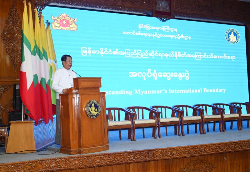 A workshop titled ‘Understanding Myanmar’s International Boundary’ was held at the Lawkanat Hall of the Ministry of Foreign Affairs, Nay Pyi Taw, on 27-28 August 2025. During the opening ceremony, U Than Swe, Union Minister for Foreign Affairs, delivered opening remarks. In his address, he emphasized the significance of boundary matters, noting that they constitute a crucial representation of state sovereignty. He also stressed the importance of efficient and effective boundary management to safeguard sovereignty, national integrity, security and stability, as well as to promote peaceful coexistence with neighbouring countries.