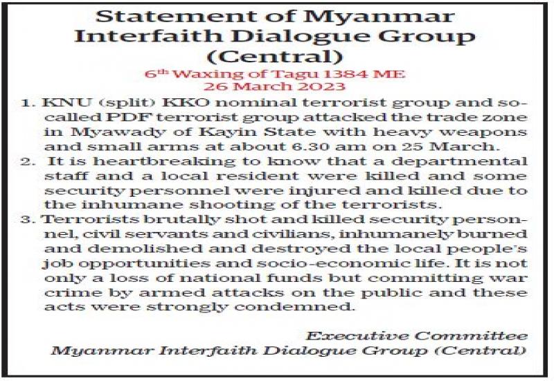 Statement of Myanmar Interfaith Dialogue Group (Central)