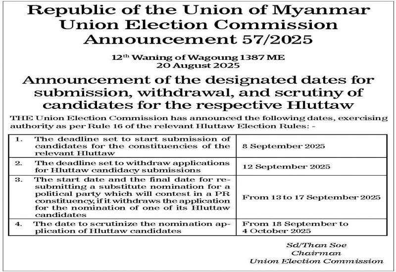 Republic of the Union of Myanmar Union Election Commission Announcement 57/2025