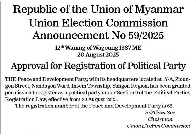 Republic of theUnion of Myanmar Union Election Commission Announcement No 59/2025