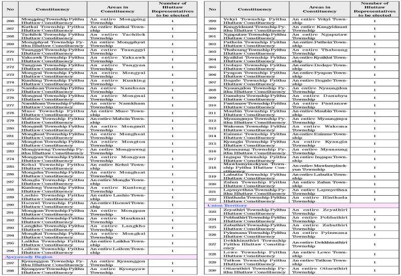 Constituencies designated for the 2025 multiparty democratic general election for the Pyithu Hluttaw (the First-Past-the-Post System)
