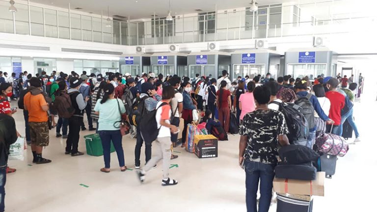 Myanmar migrant workers returned home through the second Thai-Myanmar Friendship Bridge in Myawady for five consecutive days.