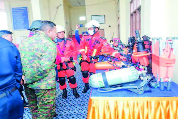 Role-playing exercises for rescue were continued in Pathein, and Yekyi of Ayeyawady Region, and at the state fire station in Hakha yesterday.