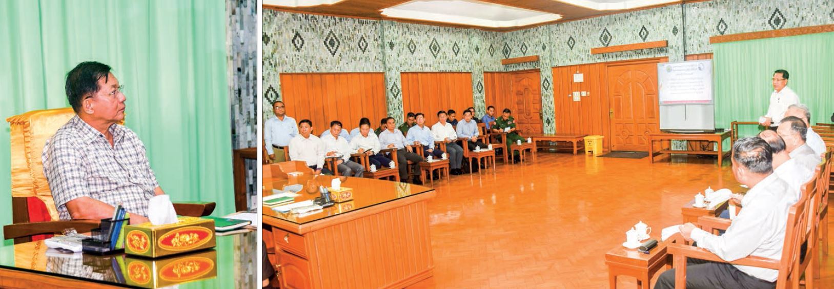 Commander-in-Chief (Air) General Tun Aung, Quartermaster-General Lt-Gen Kyaw Swa Lin and Director of Military Engineers Brig-Gen Zaw Naing Oo reported on formation of 10 groups comprising medics, engineers and information officials, collection of military bailey bridges, sending of helipads for emergency landing of helicopters, water purifiers and generations.