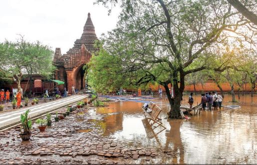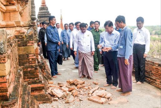 Natural disasters caused inundation at Shwezigon, Ananda, Dhammayangyi, Sulamani, Dhamma Razaka, Hsinphyushin Complex, Khayminga, Thabeikhmauk, Htilominlo, Lemyethna, Hsin[1]paung Oak Kyaung, the pagoda near Dhamma Razaka, Baganhmyaw, Ywahauggyi and Shwenanyintaw pagodas in Bagan. Some parts of eight ancient pagodas and buildings were damaged, and efforts are being made to complete the renovation as soon as possible.