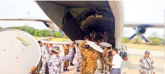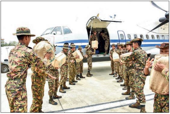 Tatmadaw conducted a total of eight airlift operations, transporting relief supplies from Nay Pyi Taw to Sittway five times, from Yangon to Sittway twice, and from Yangon to Cocokyun once yesterday.