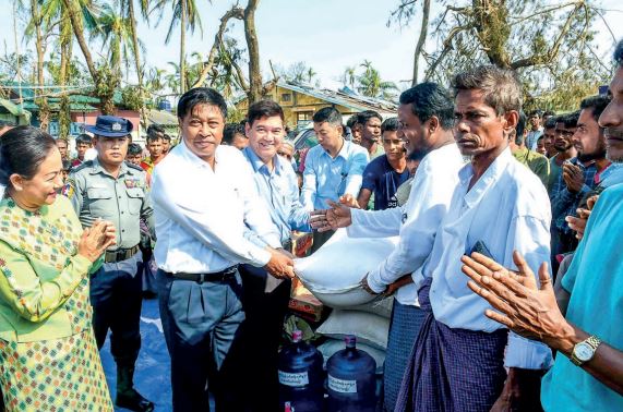 Speaking at the event, the Deputy Prime Minister talked about the cash assistance and relief items to the locals by comforting them in townships of Rakhine State, measures to keep providing rations, medicines, medical supplies, construction materials and commodities, plans to conduct cleaning processes, transportation and electrification in storm-hit areas, to repair the schools, hospitals and monasteries as quickly as possible and to conduct rehabilitation processes in strong momentum in accordance with the directives of the Prime Minister.