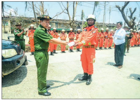 The Vice-Senior General and party also provided cash assistance to the members of the Bago Region Myanmar Fire Brigade who served recuse and relief measures in Rathedaung township.