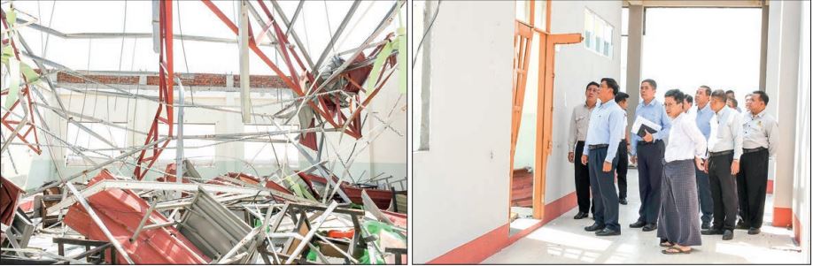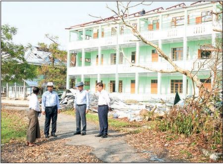 Then, they went to No 4 BEHS, Sittway, and checked the damage to the main school building and other buildings and gave advice to officials concerned to be able to do repair work speedily.