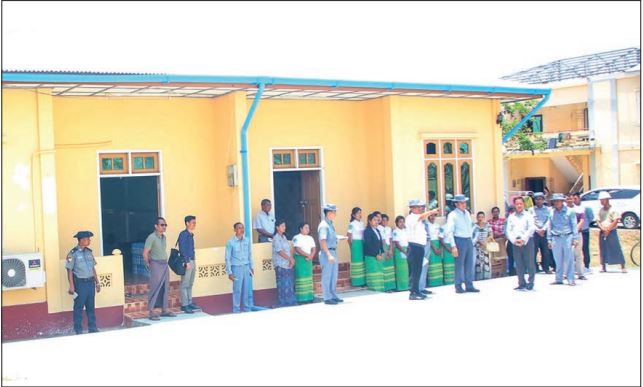 Afterwards, Union Minister Lt-Gen Tun Tun Naung cordially greeted the staff and families and provided foodstuffs and cash assistance to them.