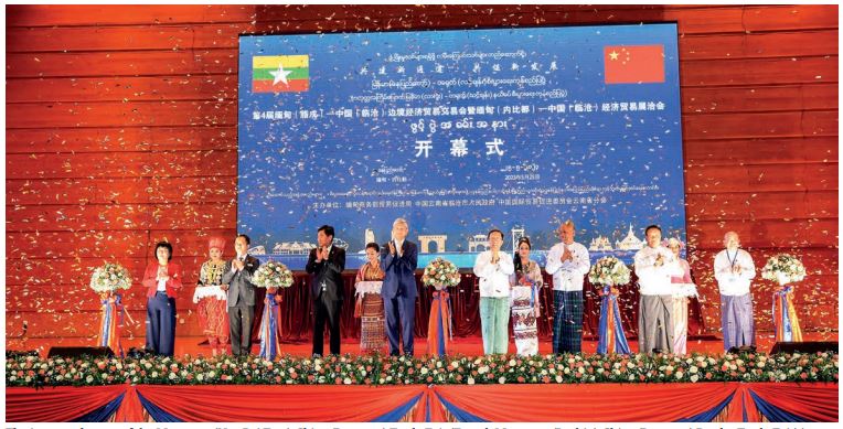 The Deputy Prime Minister, the Union Minister for Commerce, the Shan State Economic Affairs Minister, the Chinese Ambassador, the Lancang Mayor and officials cut the ribbon to open the trade fair.