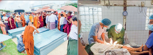 The deputy minister of the Ministry of Religious Affairs and Culture donated 8,525 CI sheets and 225 visses of roofing nails allotted by Rakhine State disaster management committee to the destroyed monasteries and nunneries in Sittway Township on 25 May, and 51 tonnes of sawn timber to 72 monasteries yesterday.