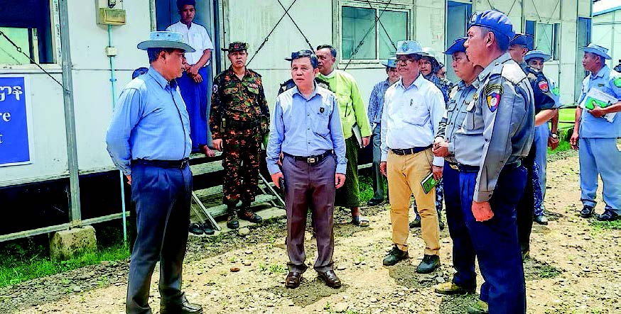 UNION Minister for Border Affairs Lt-Gen Tun Tun Naung who is also Chairman of the Rakhine State Stability and Development Coordination Committee, and Union Minister for Immigration and Population U Myint Kyaing arrived at Hlaphoekhaung temporary relief camp in Maungtaw via Sittway yesterday to check preparations for rehabilitations.