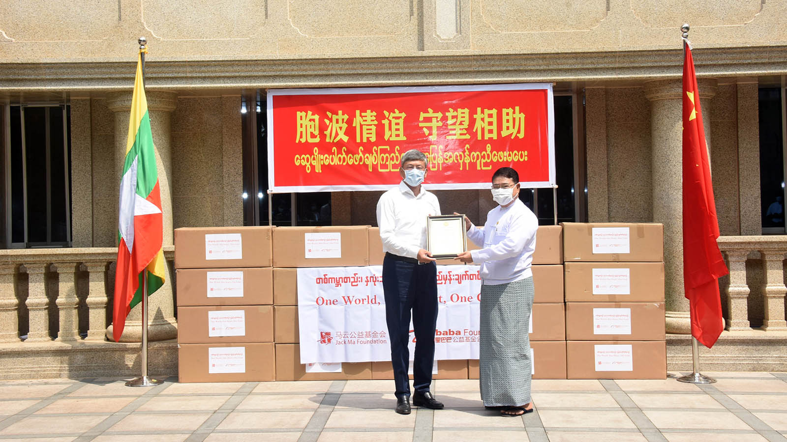 Chinese Embassy, Jack Ma Foundation and Alibaba Foundation donated medical supplies to the Ministry of Health and Sports for fighting against Covid-19 pandemic yesterday morning.