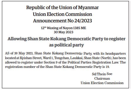 Submitted by moiuser on 31 May 2023 Republic of the Union of Myanmar Union Election Commission Announcement No 24/2023 #TheGlobalNewLightOfMyanmar