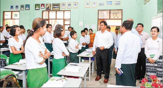 During the visit to schools, the Deputy Prime Minister talked about the efforts of the government in repairing the Mocha-hit schools in Rakhine State to open the schools in time aiming for all school-age children to attend the schools peacefully and properly cooperate to clean school buildings, classrooms and school areas.