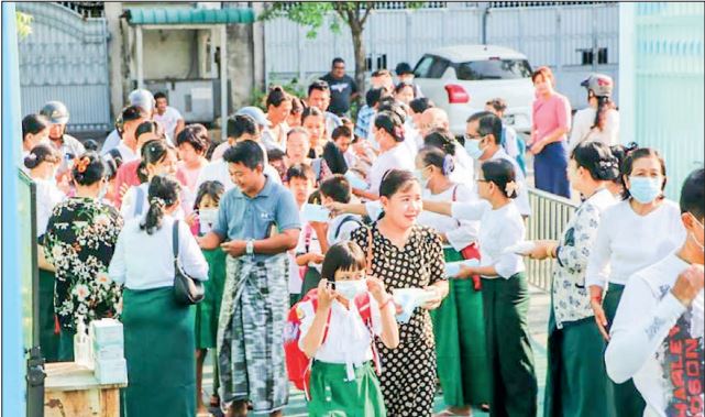 Traffic police, local authorities, fire brigade members and Myanmar Police Force members took security duty inside and outside schools.