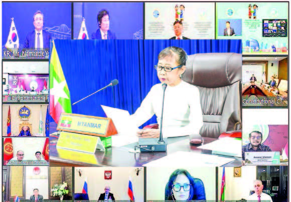 MEMBER of the Union Constitutional Tribunal Dr Malar Aung participated online yesterday in the Asian Association of Constitutional Courts and Equivalent Organizations (AACC) Board Member States Meeting and International Symposium, hosted by the Constitutional Court of Mongolia.