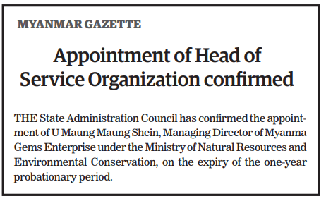 Submitted by moiuser on 23 June 2023 Appointment of Head of Service Organization confirmedAppointment of Head of Service Organization confirmed