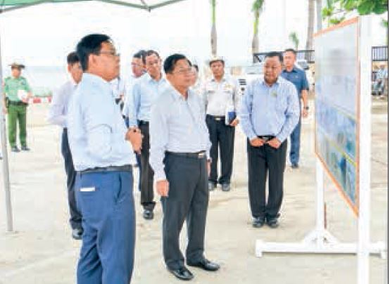 At the multipurpose jetty, the Senior General inspected the distribution of rehabilitation materials from MV Royal Venus and MV Fortune to the disaster-hit regions.