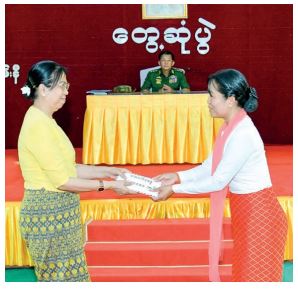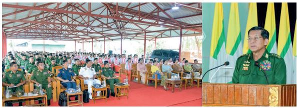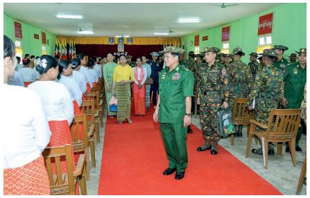 The Senior General presented foodstuffs for Tatmadaw members, families and trainees from relevant stations whereas his wife gave cash assistance for the station maternal and child welfare associations to officials.