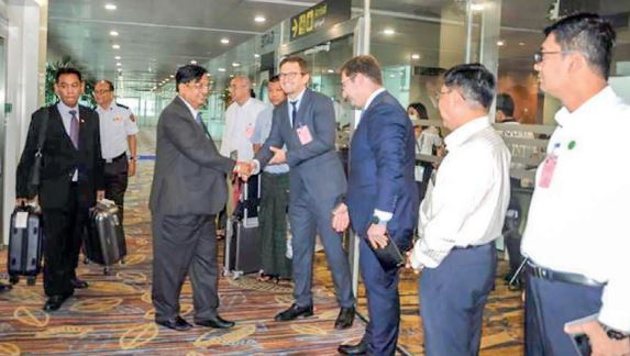 MYANMAR delegation led by Union Minister for Industry Dr Charlie Than arrived back at Yangon International Airport after attending the 13th Industrial Trade Fair in Yekaterinburg of the Russian Federation yesterday evening.