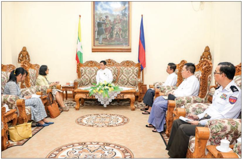 UNION Minister for Immigration and Population U Myint Kyaing received Ms Noriko Takagi, Resident Representative of the United Nations High Commissioner for Refugees (UNHCR) and party yesterday in Nay Pyi Taw.