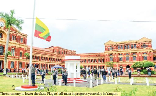 A ceremony of lowering the State Flag to half-mast was held at the Secretariat (former Ministers’ Office) where General Aung San and leaders were assassinated, to mark the 76th Martyrs’ Day on the morning of 19 July 2023.