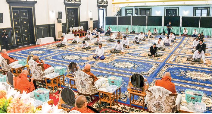 First, all those present on the occasion took the Five Precepts from State Sangha Maha Nayaka Vice-Chairperson Agga Maha Pandita Agga Maha Saddhamma Jotikadhaja Masoeyein Sayadaw Bhaddanta Kasara Bhivamsa and listened to the Sayadaws and Sanghas reciting Paritta.