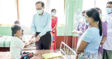 First, the Union minister accompanied by officials visited Pyay General Hospital and looked round the construction site of the five-storey building and laboratory and x-ray departments. Afterwards, the Union minister met health workers working at the hospital, ordered the issues of providing quality medical care, and coordinated to meet the needs.