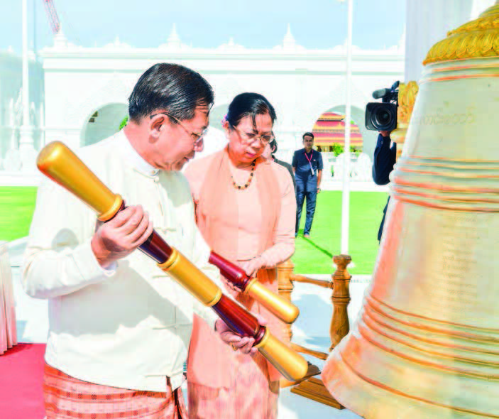 SAC Vice-Chairman Deputy Prime Minister Vice-Senior General Soe Win and wife Daw Than Than Nwe also beat the bell.