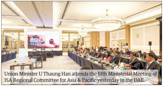 THE Myanmar delegation led by Union Minister for Electric Power U Thaung Han arrived in the UAE on 24 July to attend the 5th Ministerial Meeting of the International Solar Alliance (ISA) Regional Committee for Asia and Pacific Region.