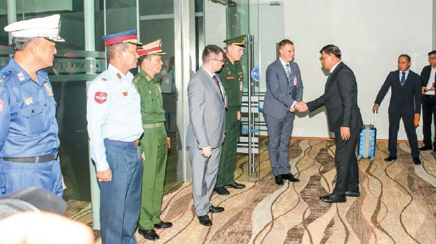 The delegation led by Admiral Tin Aung San was seen off by Yangon Region Chief Minister U Soe Thein, senior military officers, Mr Pavel Klabukov who is a counsellor from the Embassy of the Russian Federation to Myanmar and officials at Yangon International Airport.