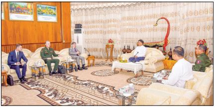 SAC Member Deputy Prime Minister Union Minister for Defence Admiral Tin Aung San received Russian Ambassador to Myanmar Mr Iskander Azizov at the ministry office yesterday afternoon.