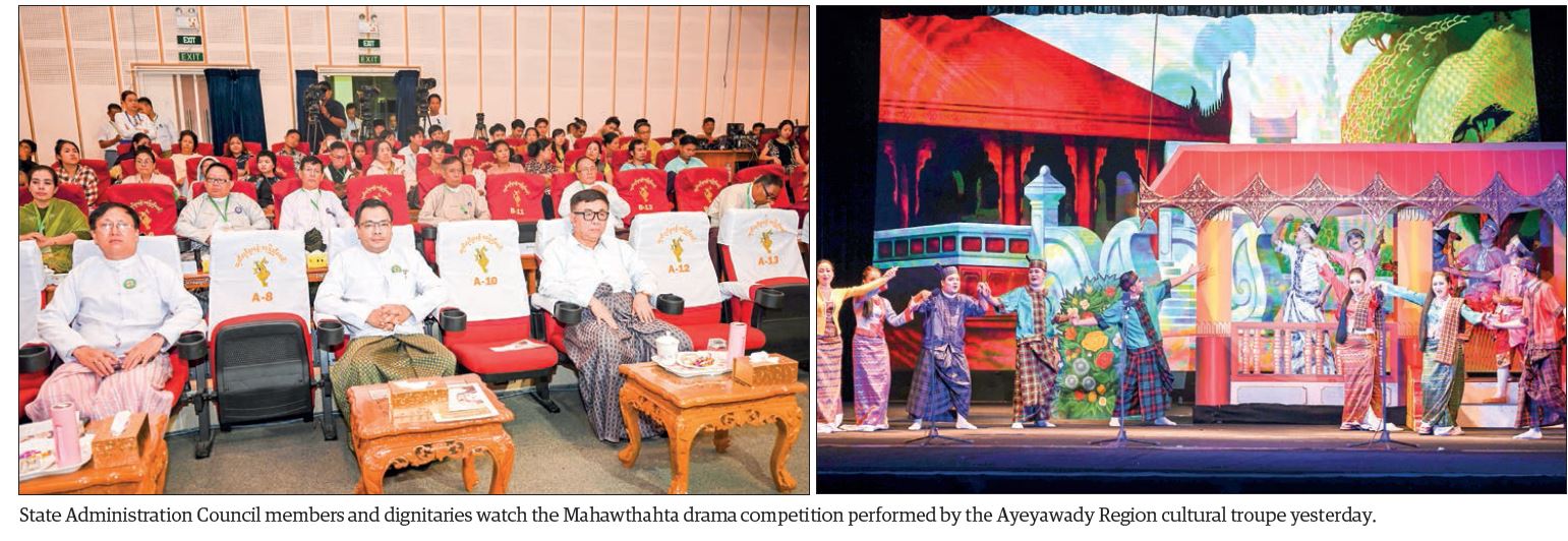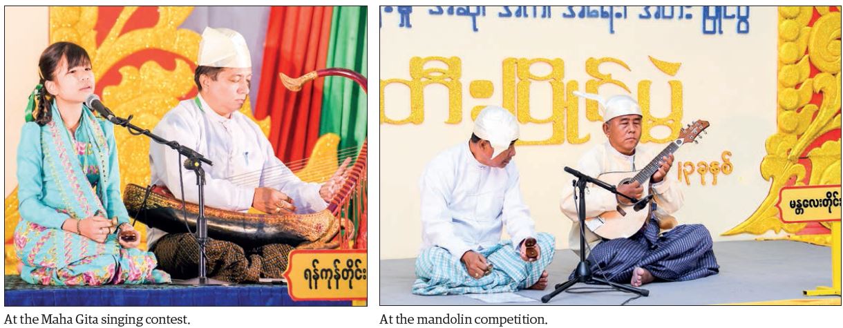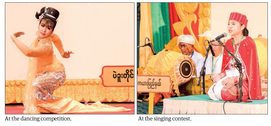The contestants from various regions and states participated in the “Maha Gita” singing competition, “modern song” competition, dance competition, song-composing competition, adding lyrics to melody of composing competition, mandolin competition, violin competition, oboe competition, Myanmar orchestra solo competition, marionette troupe competition, and Mahawthahta drama competition which took place at designated venues yesterday.