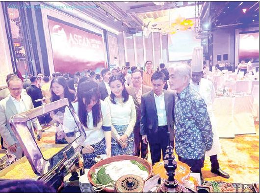 FAMILIES of the Myanmar Embassy to Singapore exhibited local products and commodities and served the guests with the country’s traditional foods at the ASEAN Gala Night that was held in Singapore’s Orchard Hotel on 21 November, according to the Ministry of Foreign Affairs.