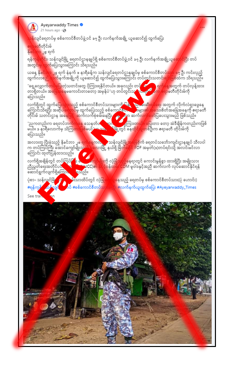 FAKE news that 17 soldiers from the Thanlyin Naval Base, Yangon Region have absconded bringing weapons and munition has been intentionally spread through social media.