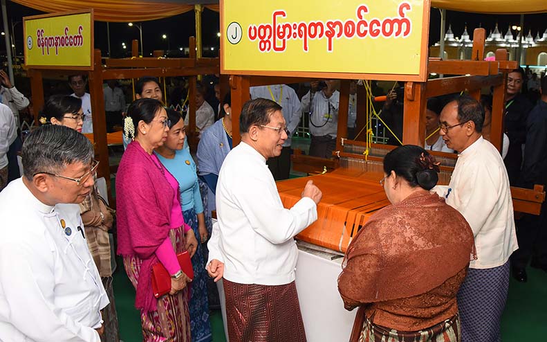 When the looms were functioning, artistes from MRTV of the Ministry of Information, the Fine Arts Department of the Ministry of Religious Affairs and Culture and Myawady Entertainment Troupe under the Directorate of Public Relations and Psychological Warfare performed a song and dances. The attendees released small hot-air balloons at the same time.
