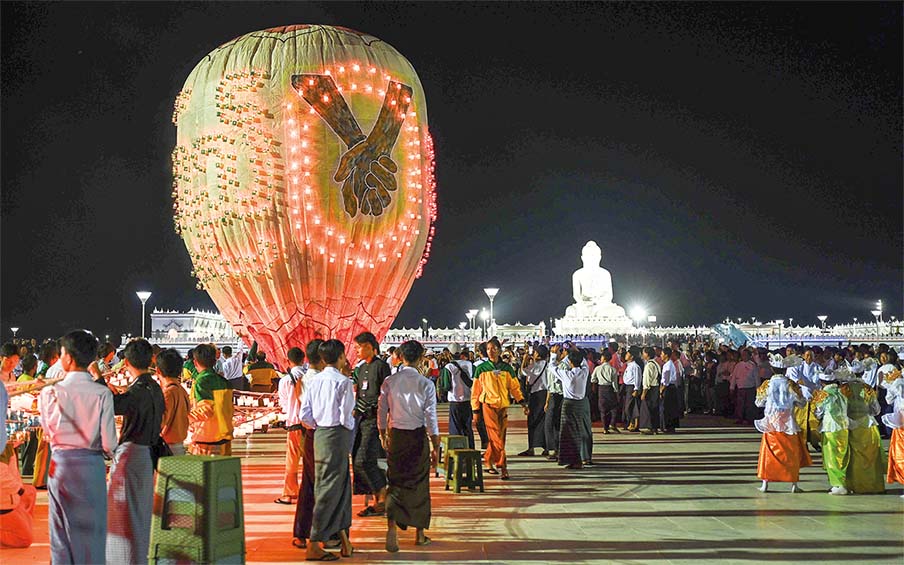 The Tazaungdine lighting festival will last from 25 to 27 November. During the period, arrangements have been made to light 9,000 oil lamps, recite Pathana treatise, launch fireworks, release hot-air balloons and weave golden lotus robes for the first time. Moreover, the Buddha Park is illuminated with LED blubs whereas domestic products, foodstuffs, personal goods and traditional snacks are sold.