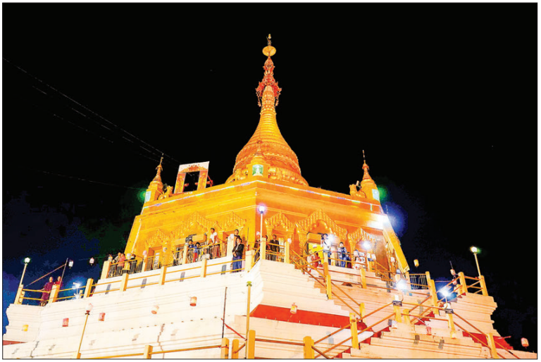 Pilgrims across Myanmar, departmental officials and members of various associations lit 3,000 candles inside the pagoda compound and sent hotair balloons into the air, said pagoda board of trustees’ chair U Kyaw Thein. People also visited Nagabwat Mountain, Shin Min Puu Pagoda, Mann Shwe Settaw Pagoda and Shin Pin Chantha Gyi Pagoda on the same day, donating food utensils and doing good deeds.