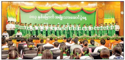Students from No 11 Basic Education High School also sang the song “Myanmar School” to honour the 103rd National Victory Day and closed the event with group documentary photos being recorded.
