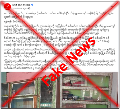 A media outlet, Khit Thit Media, is spreading misinformation on social networking sites that the Tatmadaw raided Nyinmaw Village, Launglon Township, Taninthayi Region, and robbed public property worth K50 million.