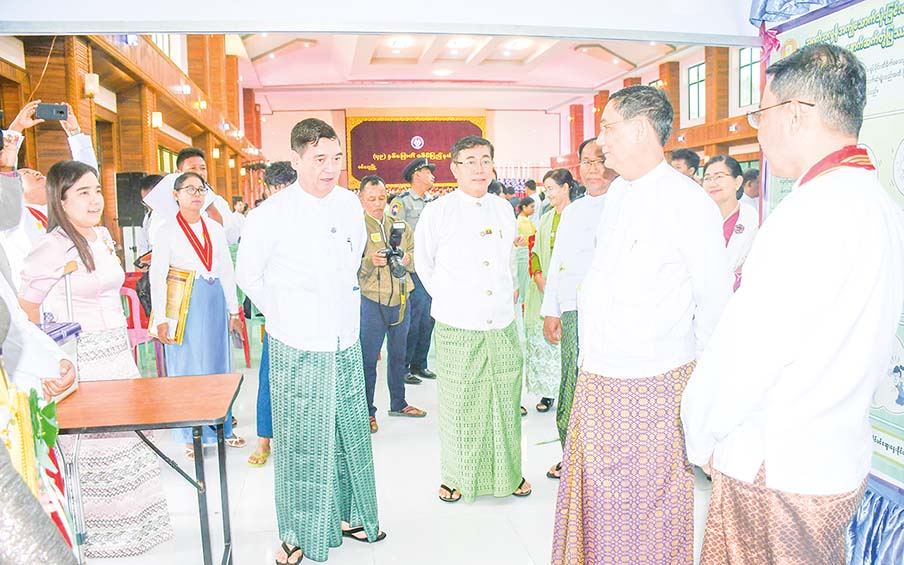 Then, the SAC member presented the first awards for excellence in management to three recipients, the Chief Minister the first awards for excellence in agricultural business and social affairs to respective winners, the Western Command Commander the first awards for excellence in social affairs to two winners, and the wife of the Chief Minister and patron of the Rakhine State Women’s Affairs Committee the first awards for excellence in social affairs to two winners.