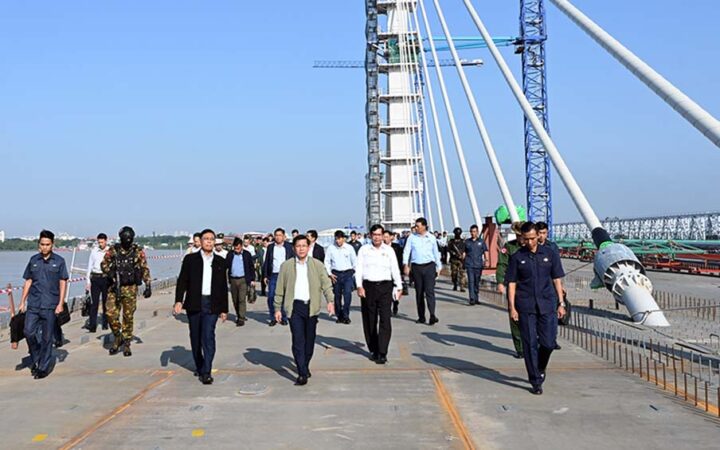 The ceremony to fix a gold nut at the bridge was also attended by Council Joint Secretary Lt-Gen Ye Win Oo, council members General Mya Tun Oo and Lt-Gen Nyo Saw, Union Ministers U Ko Ko Lwin, Dr Thet Khaing Win and U Myo Thant, Yangon Region Chief Minister U Soe Thein and officials.